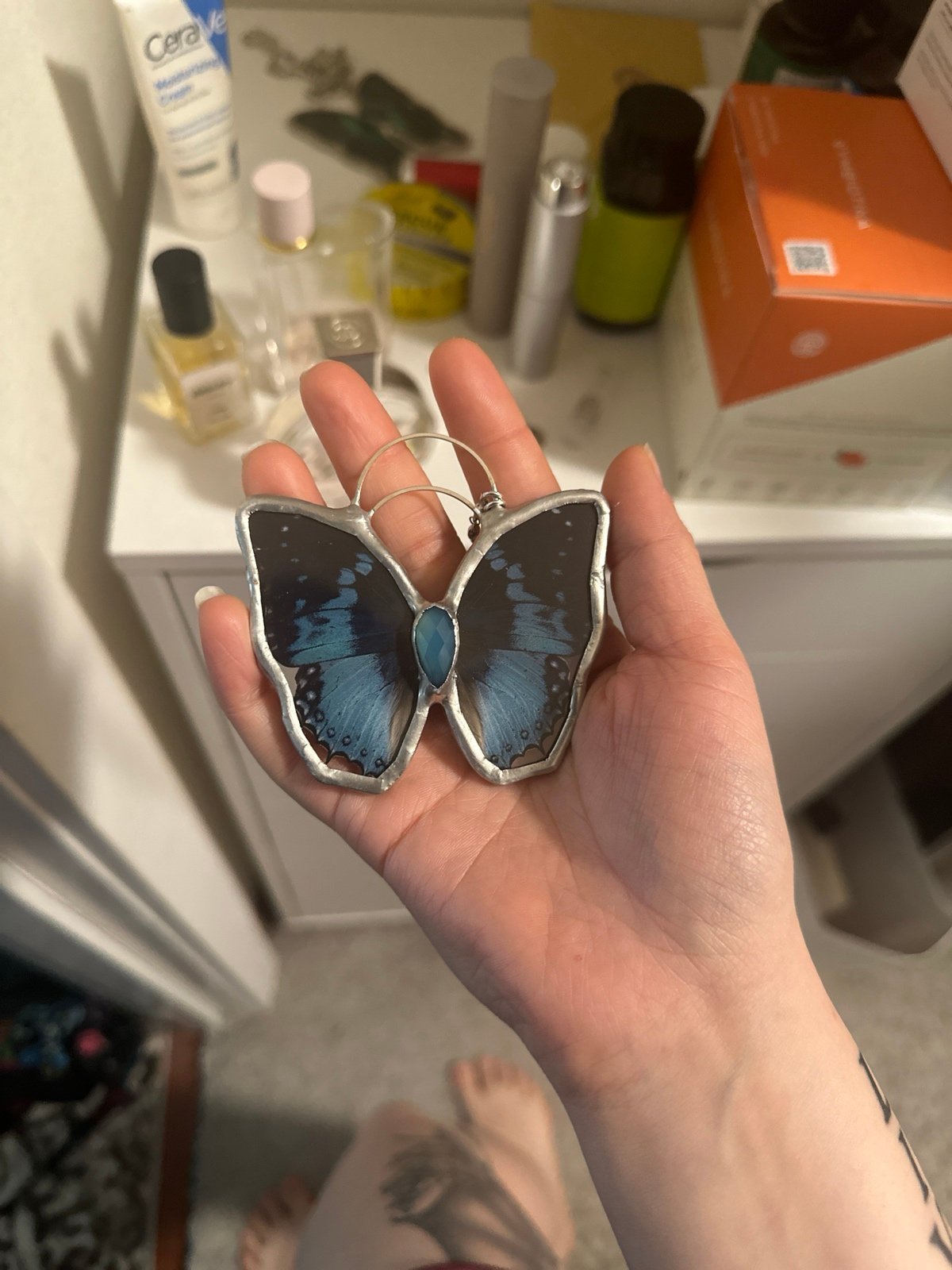 Made with sterling silver and she uses the butterfly wings that are ethically sourced from sanctuary.